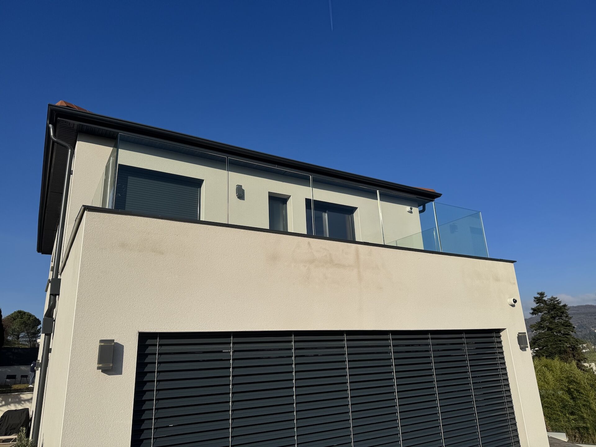 L’installation d’éléments de miroiterie avec un garde-corps de terrasse à Dardilly, près de Lyon, répond à un double objectif : sécuriser les espaces extérieurs en hauteur tout en préservant une vue dégagée et une intégration architecturale discrète.